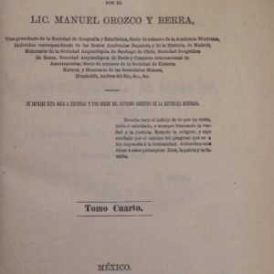 HISTORIA ANTIGUA Y DE LA CONQUISTA DE MEXICO POR EL LIC. MANUEL OROZCO Y BERRA. TOMO IV