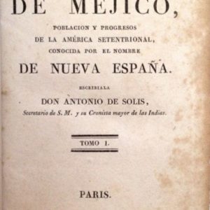 HISTORIA DE LA CONQUISTA DE MEJICO, POBLACION Y PROGRESOS DE LA AMERICA SETENTRIONAL, CONOCIDA POR EL NOMBRE DE NUEVA ESPAÑA. ESCRIBIALA DON ANTONIO DE SOLIS, SECRETARIO DE S. M. Y SU CRONISTA MAYOR DE LAS INDIAS. TOMO I