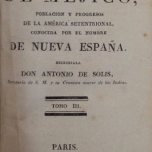 HISTORIA DE LA CONQUISTA DE MEJICO, POBLACION Y PROGRESOS DE LA AMERICA SETENTRIONAL, CONOCIDA POR EL NOMBRE DE NUEVA ESPAÑA. ESCRIBIALA DON ANTONIO DE SOLIS, SECRETARIO DE S. M. Y SU CRONISTA MAYOR DE LAS INDIAS. TOMO III