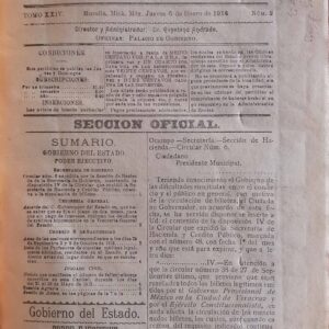 PERIODICO OFICIAL DEL ESTADO DE MICHOACAN DE OCAMPO. TOMO XXIV. 6 DE ENERO DE 1916. No. 2 AL 102. 21 DICIEMBRE DE 1916.