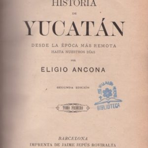 HISTORIA DE YUCATAN. DESDE LA EPOCA MAS REMOTA HASTA NUESTROS DIAS. TOMO PRIMERO