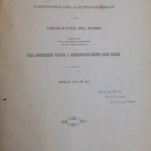 MEMORIA. PRESENTADA POR EL CIUDADANO GENERAL DE DIVISION MANUEL GONZALEZ AL EJECUTIVO DE LA UNION, AL DEL ESTADO DE MICHOACAN Y A LA LEGISLATURA DEL MISMO SOBRE EL USO DE LAS FACULTADES DISCRECIONALES QUE LE FUERON CONCEDIDAS PARA REORGANIZAR POLITICA Y ADMINISTRATIVAMENTE DICHO ESTADO