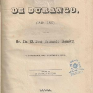 NOTICIAS HISTORICAS ESTADISTICAS DE DURANGO, (1849-1850)