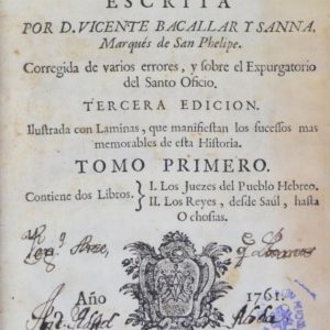 LA MONARCHA HEBREA. ESCRITA POR D. VICENTE BACALLAR Y SANNA, MARQUES DE SAN PHELIPE. CORREGIDA DE VARIOS ERRORES, Y SOBRE EL EXPURGATORIO DEL SANTO OFICIO. TOMO PRIMERO. CONTIENE DOS LIBROS. I. LOS JUEZES DEL PUEBLO HEBREO. II. LOS REYES, DESDE SAUL, HASTA O CHOFIAS