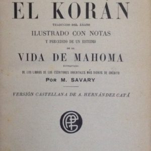 MAHOMA. EL KORAN. TRADUCIDO DEL ARABE. ILUSTRADO CON NOTAS Y PRECEDIDO DE UN ESTUDIO DE LA VIDA DE MAHOMA EXTRACTADO DE LOS LIBROS DE LOS ESCRITORES ORIENTALES MAS DIGNOS DE CREDITO. POR M. SAVARY. VERSION CASTELLANA DE A. HERNANDESZ CATA