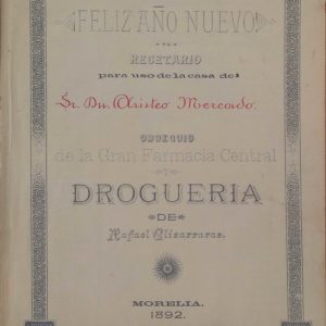 FELIZ AÑO NUEVO. RECETARIO PARA USO DE LA CASA DEL SR. DN. ARISTEO MERCADO. OBSEQUIO DE LA GRAN FARMACIA CENTRAL Y DROGUERIA DE RAFAEL ELIZARRARAS