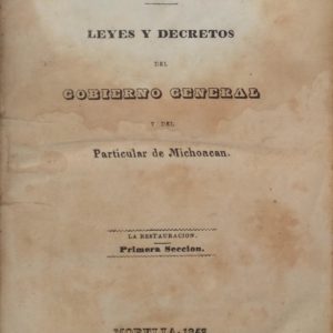 DOCUMENTOS OFICIALES. LEYES Y DECRETOS DEL GOBIERNO GENERAL Y DEL PARTICULAR DE MICHOACAN (TOMO I)