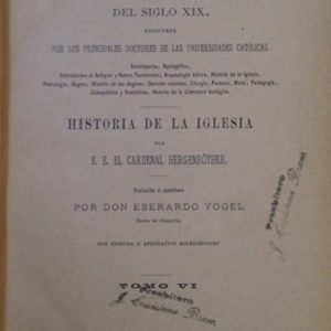 BIBLIOTECA TEOLOGICA DEL SIGLO XIX. HISTORIA DE LA IGLESIA. POR EL CARDENAL HERGENROTHER.TOMO VI