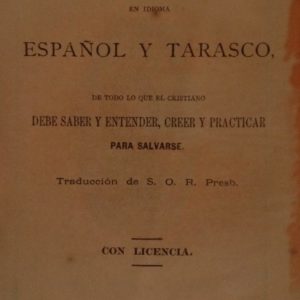 CATECISMO PEQUEÑO EN IDIOMA ESPAÑOL Y TARASCO, DE TODO LO QUE EL CRISTIANO DEBE SABER Y ENTENDER, CREER Y PRACTICAR PARA SALVARSE. TRADUCCION DE S. O. R. PRESB. CON LICENCIA. CATECISMO ZAPICHU CATAMBA ESPAÑOL CA TARASCO HIMBO, YAMENDO AMBEERI YNQUI CRISTIANO KUANINCHCA MITENI CA CURHANGUNI, HACAHCUNI CA NIATANI EUAHPEQUARENTSTANI UECANI. MONGARHITAQUA S. O. R. CASZIREQUA. SESEQUA HINGUN