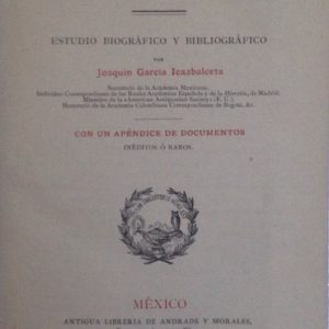 DON FRAY JUAN DE ZUMARRAGA PRIMER OBISPO Y ARZOBISPO DE MEXICO. ESTUDIO BIOGRAFICO Y BIBLIOGRAFICO POR JOAQUIN GRACIA ICAZBALCETA