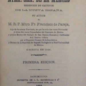 CRONICA DE LA PROVINCIA DE LA VISITACION DE NTRA. SRA. DE LA MERCED REDENCION DE CAUTIVOS DE LA NUEVA ESPAÑA. (TOMO PRIMERO)