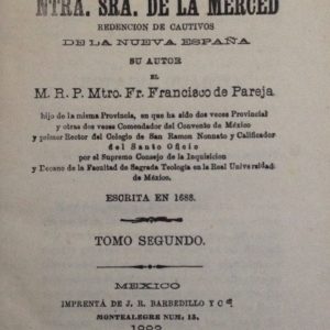 CRONICA DE LA PROVINCIA DE LA VISITACION DE NTRA. SRA. DE LA MERCED REDENCION DE CAUTIVOS DE LA NUEVA ESPAÑA. (TOMO SEGUNDO)
