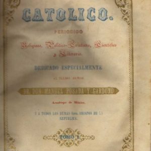 EL CATOLICO. PERIODICO RELIGIOSO, POLITICO-CRISTIANO, CIENTIFICO Y LITERARIO DEDICADO ESPECIALMENTE AL ILLMO. DR DON MANUEL POSADA Y GARDUÑO ARZOBISPO DE MEXICO, Y A TODOS LOS DEMAS SRES, OBISPOS DE LA REPUBLICA. TOMO I. NUM. 1 – 26.