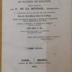 ENSAYO SOBRE LA INDIFERENCIA EN MATERIA DE RELIGION. OBRA ESCRITA POR F. DE LA MENNAIS. TOMO SEXTO