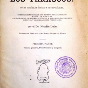 LOS TARASCOS. NOTAS HISTORICAS ETNICAS Y ANTROPOLOGICAS, COMPRENDIENDO DESDE LOS TIEMPOS PRECOLOMBINOS HASTA LOS ACTUALES, COLEGIDAS DE ESCRITORES ANTIGUOS Y MODERNOS, DOCUMENTOS INEDITOS Y OBSERVACIONES PERSONALES, POR EL DR. NICOLAS LEON. PRIMERA PARTE. HISTORIA PRIMITIVA, DESCUBRIMIENTO Y CONQUISTA