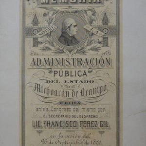 MEMORIA SOBRE LA ADMINISTRACION PUBLICA DEL ESTADO DE MICHOACAN DE OCAMPO, LEIDA ANTE EL CONGRESO DEL MISMO POR EL SECRETARIO DEL DESPACHO, LIC. FRANCISCO PEREZ GIL EN LA SESION DEL 26 DE SEPTIEMBRE DE 1890