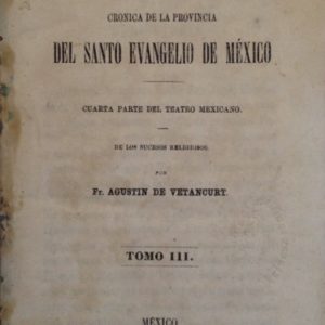 TEATRO EN MEXICANO. DESCRIPCION BREVE DE LOS SUCESOS EJEMPLARES, HISTORICOS, POLITICOS, MILITARES Y RELIGIOSOS DEL NUEVO MUNDO OCCIDENTAL DE LAS INDIAS. CRONICA DE LA PROVINCIA DEL SANTO EVANGELIO DE MEXICO. CUARTA PARTE DEL TEATRO MEXICANO. DE LOS SUCESOS RELIGIOSOS .TOMO III