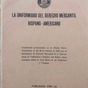LA UNIFORMIDAD DEL DERECHO MERCANTIL. HISPANO – AMERICANO. CONFERENCIA PRONUNCIADA EN LA UNION IBERO-AMEROCANA, EL DIA 28 DE FEBRERO DE 1923, POR EL CATEDRATICO DE DERECHO MERCANTIL DE LA UNIVERSIDAD DE VALLADOLID Y SENADOR DEL REINO, EXCELENTISIMO SEÑOR D. JOSE MARIA G. DE ECHAVARRI Y VIVANCO