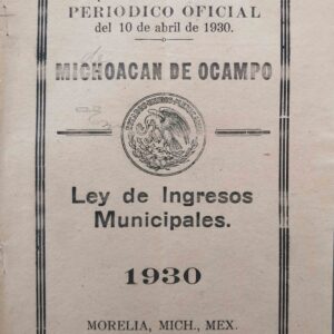 LEY DE INGRESOS MUNICIPALES 1930. SR. LIC. ENRIQUE DELGADO SUPLEMENTO AL NUMERO 76 DEL PERIODICO OFICIAL DEL 10 DE ABRIL DE 1930. MICHOACAN DE OCAMPO