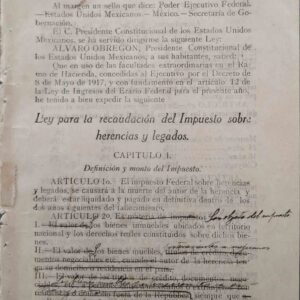 LEY PARA LA RECAUDACION DEL IMPUESTO SOBRE HERENCIAS Y LEGADOS. SECRETARIA DE HACIENFDA Y CREDITO PUBLICO.