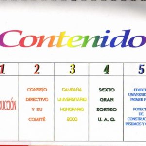 CONTENIDO, INTRODUCCION, CONSEJO DIRECTIVO Y SU COMITE, CAMPAÑA UNIVERSITARIO HONORARIO 2000 SEXTO GRAN SORTEO UAQ