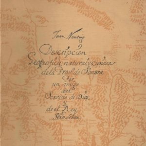 DESCRIPCION GEOGRAFICA NATURAL Y CURIOSA DE LA PROVINCIA DE SONORA. PUBLICACIONES DEL ARCHIVO GENERAL DE LA NACION. SEGUNDA SERIE. NUMERO 1