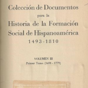 COLECCION DE DOCUMENTOS PARA LA HISTORIA DE LA FORMACION SOCIAL DE HISPANOAMERICA 1493-1810. VOLUMEN III. PRIMER TOMO (1691-1779)
