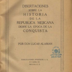 DISERTACIONES SOBRE LA HISTORIA DE LA REPUBLICA MEJICANA DESDE LA EPOCA DE LA CONQUISTA