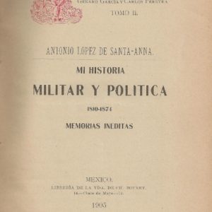 DOCUMENTOS INEDITOS O MUY RAROS PARA LA HISTORIA DE MEXICO. TOMO II. ANTONIO LOPEZ DE SANTA ANNA. MI HISTORIA MILITAR Y POLITICA. 1810-1874. MEMORIAS INEDITAS