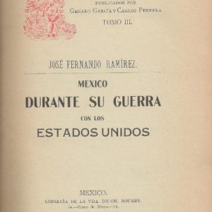 DOCUMENTOS INEDITOS O MUY RAROS PARA LA HISTORIA DE MEXICO. TOMO III. JOSE FERNANDO RAMIREZ. MEXICO DURANTE SU GUERRA CON LOS ESTADOS UNIDOS.