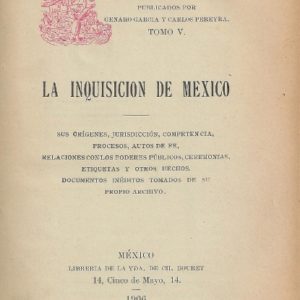DOCUMENTOS INEDITOS O MUY RAROS PARA LA HISTORIA DE MEXICO. TOMO V. LA INQUISICION DE MEXICO. SUS ORIGENES, JURISDICCION, COMPETENCIA, PROCESOS, AUTOS DE FE, RELACIONES CON LOS PODERES PUBLICOS, CEREMONIAS, ETIQUETAS Y OTROS HECHOS. DOCUMENTOS INEDITOS TOMADOS DE SU PROPIO ARCHIVO.