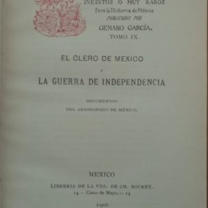 DOCUMENTOS INEDITOS O MUY RAROS PARA LA HISTORIA DE MEXICO. TOMO IX. EL CLERO DE MEXICO Y LA GUERRA DE INDEPENDENCIA. DOCUMENTOS DEL ARZOBISPADO DE MEXICO.