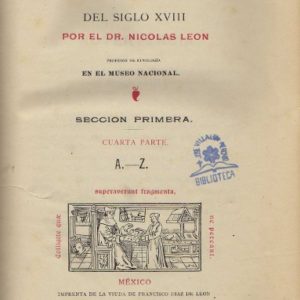 BIBLIOGRAFIA MEXICANA DEL SIGLO XVIII. SECCION PRIMERA. CUARTA PARTE. A.-Z.