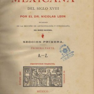 BIBLIOGRAFIA MEXICANA DEL SIGLO XVIII. SECCION PRIMERA. PRIMERA PARTE. A.-Z.