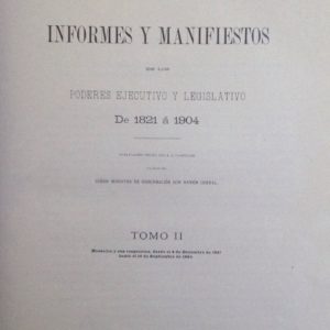 INFORMES Y MANIFIESTOS DE LOS PODERES EJECUTIVO Y LEGISLATIVO. DE 1821 A 1904. TOMO II.