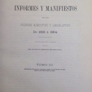 INFORMES Y MANIFIESTOS DE LOS PODERES EJECUTIVO Y LEGISLATIVO. DE 1821 A 1904. TOMO III.