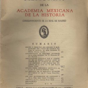MEMORIAS DE LA ACADEMIA MEXICANA DE LA HISTORIA CORRESPONDIENTE DE LA REAL DE MADRID. TOMO II. OCTUBRE-DICIEMBRE DE 1943. NUMERO 4