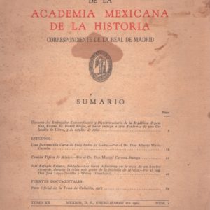 MEMORIAS DE LA ACADEMIA MEXICANA DE LA HISTORIA CORRESPONDIENTE DE LA REAL DE MADRID. TOMO XX. ENERO-MARZO DE 1961. NUMERO 1