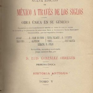 MEXICO A TRAVES DE LOS SIGLOS. HISTORIA PATRIA. NUEVA EDICION DE MEXICO A TRAVES DE LOS SIGLOS. OBRA UNICA EN SU GENERO. PRIMERA EPOCA. HISTORIA ANTIGUA. TOMO V.