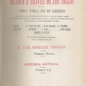 MEXICO A TRAVES DE LOS SIGLOS. HISTORIA PATRIA. NUEVA EDICION DE MEXICO A TRAVES DE LOS SIGLOS. OBRA UNICA EN SU GENERO. PRIMERA EPOCA. HISTORIA ANTIGUA. TOMO VII