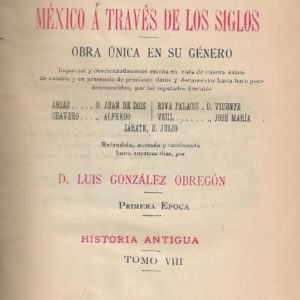 MEXICO A TRAVES DE LOS SIGLOS. HISTORIA PATRIA. NUEVA EDICION DE MEXICO A TRAVES DE LOS SIGLOS. OBRA UNICA EN SU GENERO. PRIMERA EPOCA. HISTORIA ANTIGUA. TOMO VIII.