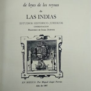 RECOPILACION DE LEYES DE LOS REYNOS DE LAS INDIAS. ESTUDIOS HISTORICOS-JURIDICOS