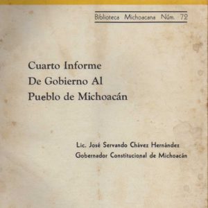 CUADERNOS DE CULTURA POPULAR. BIBLIOTECA MICHOACANA NUM. 72. CUARTO INFORME DE GOBIERNO AL PUEBLO DE MICHOACAN. LIC. JOSE SERVANDO CHAVEZ HERNANDEZ. GOBERNADOR CONSTITUCIONAL DE MICHOACAN.