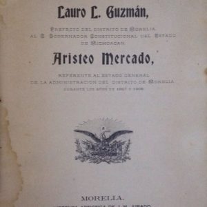 INFORME QUE RINDE EL C. MAYOR DE CABALLERIA, LAURO C. GUZMAN PREFECTO DEL DISTRITO DE MORELIA, AL C. GOBERNADOR CONSTITUCIONAL DEL ESTADO DE MICHOACAN, ARISTEO MERCADO, REFERENTE AL ESTADO GENERAL DE LA ADMINISTRACION DEL DISTRITO DE MORELIA, DURANTE LOS AÑOS DE 1907 Y 1908.