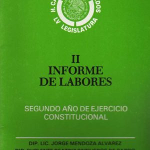II INFORME DE LABORES. SEGUNDO AÑO DE EJERCICIO CONSTITUCIONAL. DIP. LIC. JORGE MENDOZA ALVAREZ. DIP. SUPLENTE BEATRIZ ONTIVEROS DE PARDO