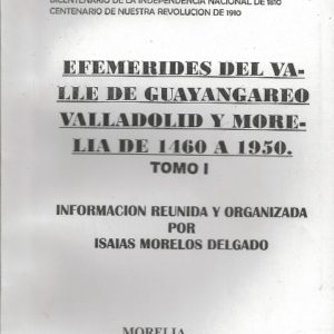 FOLLETOS DE LA HISTORIA DE MORELIA No. 12. PARA CONMEMORAR EL: BICENTENARIO DE LA CONJURACION DE VALLADOLIDDE 1809. BICENTENARIO DE LA INDEPENDENCIA NACIONAL DE 1810. CENTENARIO DE NUESTRA REVOLUCION DE 1910. EFEMERIDES DEL VALLE DE GUAYANGAREO VALLADOLID Y MORELIA DE 1460 A 1950. TOMO I