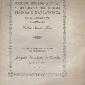 ORIGEN, ESTADO ACTUAL Y GEOGRAFIA DEL IDIOMA PIRINDA O MATLATZINCA EN EL ESTADO DE MICHOACAN DOCTOR NICOLAS LEON (FOTOCOPIAS)