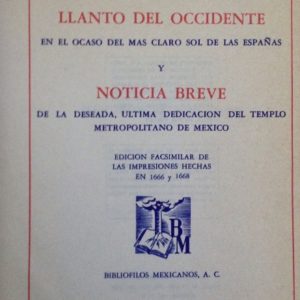 LLANTO DEL OCCIDENTE. EN EL OCASO DEL MAS CLARO SOL DE LAS ESPAÑAS Y NOTICIA BREVE DE LA DESEADA, ULTIMA DEDICACION DEL TEMPLO METROPOLITANO DE MEXICO