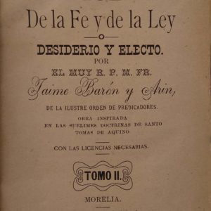 LUZ DE LA FE Y DE LA LEY O DESIDERIO Y ELECTO. POR EL MUY R. P. M. FR. JAIME BARON Y ARIN, DE LA ILUSTRE ORDEN DE PREDICADORES. TOMO II