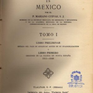 HISTORIA DE LA IGLESIA EN MEXICO. TOMO I. LIBRO PRELIMINAR. ESTADO DEL PAIS DE ANAHUAC ANTES DE SU EVANGELIZACION Y. LIBRO PRIMERO. ORIGENES DE LA IGLESIA EN NUEVA ESPAÑA 1511-1548